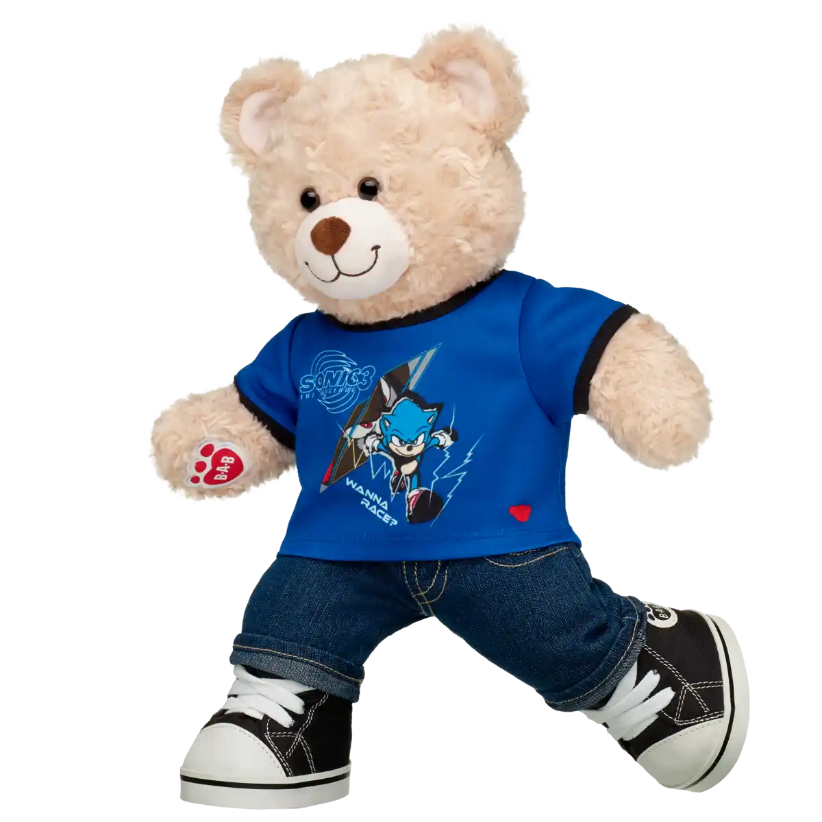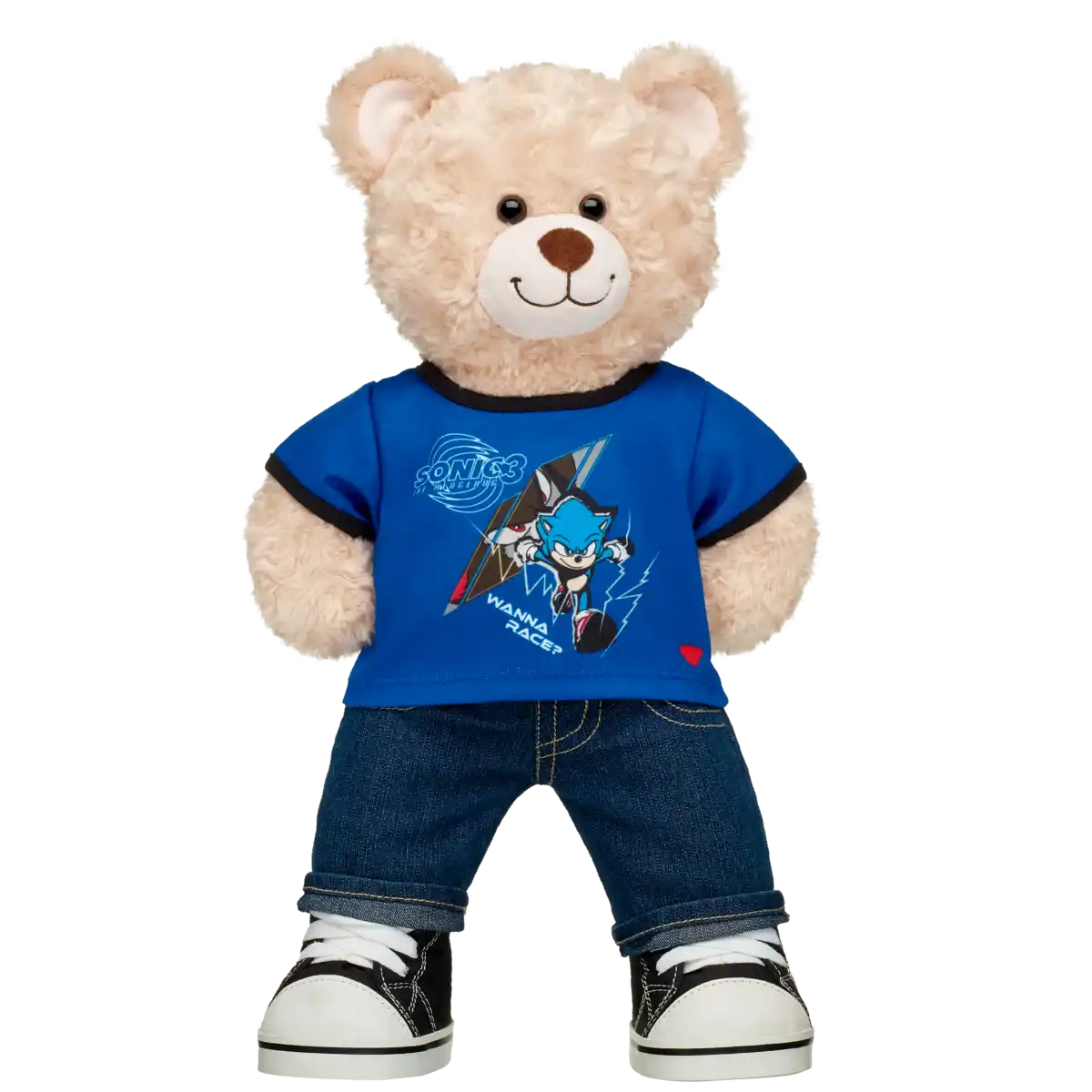 T-shirten er designet til standard Build-A-Bear-bamser og er nem at tage af og på – så outfittet hurtigt kan skiftes, når næste eventyr kalder. Den er oplagt som gave til Sonic-fans eller som en sjov opgradering af bamse-garderoben.