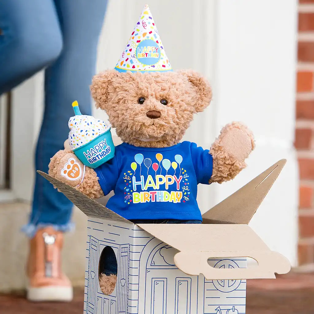 Schaffe ein persönliches Geschenk mit einem Bären aus unserer Geburtstagskollektion und ergänze ihn mit Kleidung und Accessoires aus Bärenkleidung und Zubehör. Eine Umarmung, und die Party beginnt! 🥳