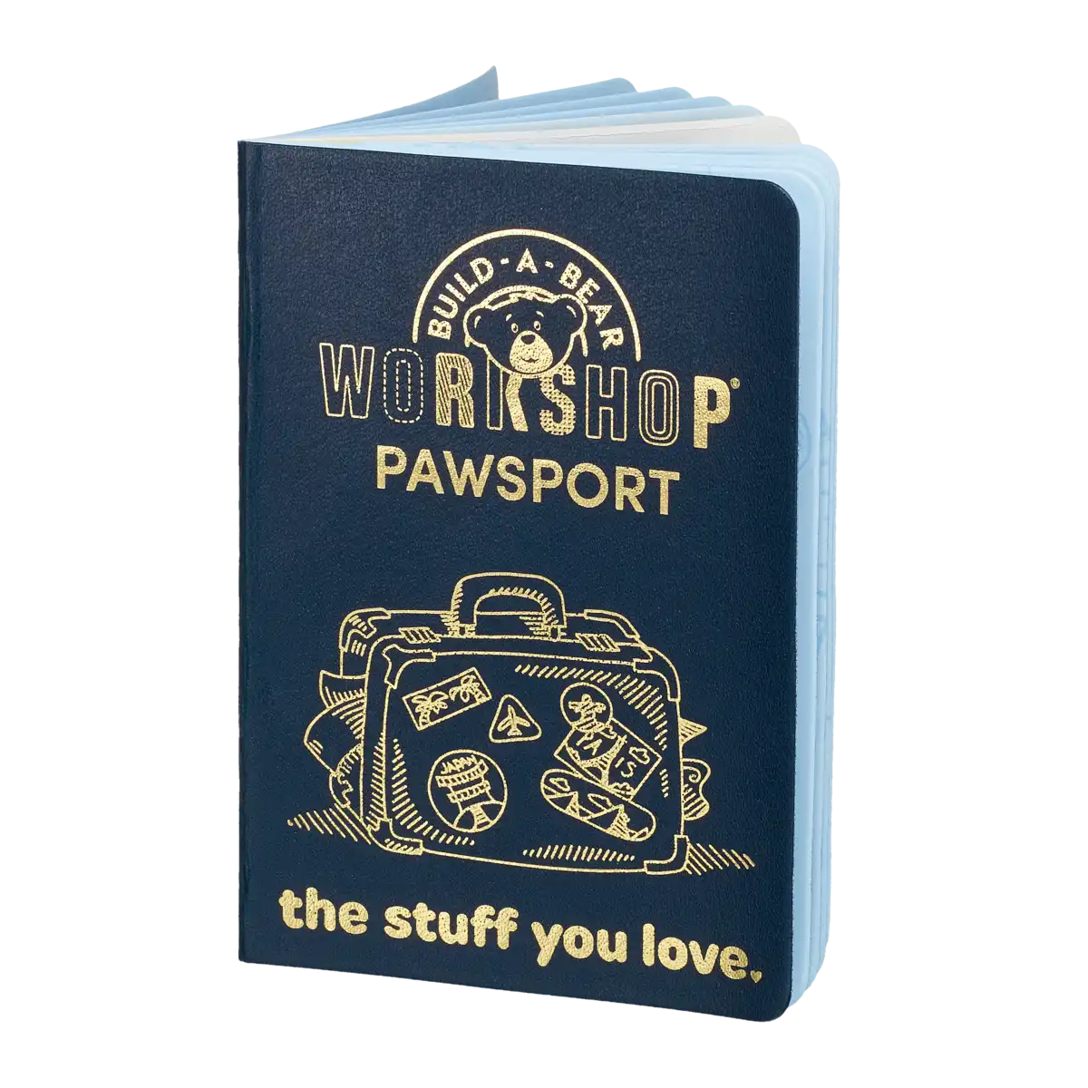 Klassischer blauer Pass mit Build-A-Bear-Logo