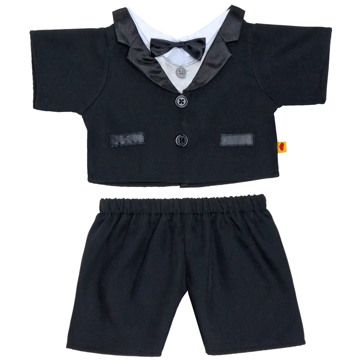 Mach deinen Bären bereit für die Party und besondere Anlässe mit dem eleganten Smoking! Dieses klassische Anzug-Set besteht aus einer schwarzen Jacke mit passenden Hosen, einem weißen Hemd und einer Fliege – perfekt für Hochzeiten, Geburtstage oder jeden besonderen Anlass.
