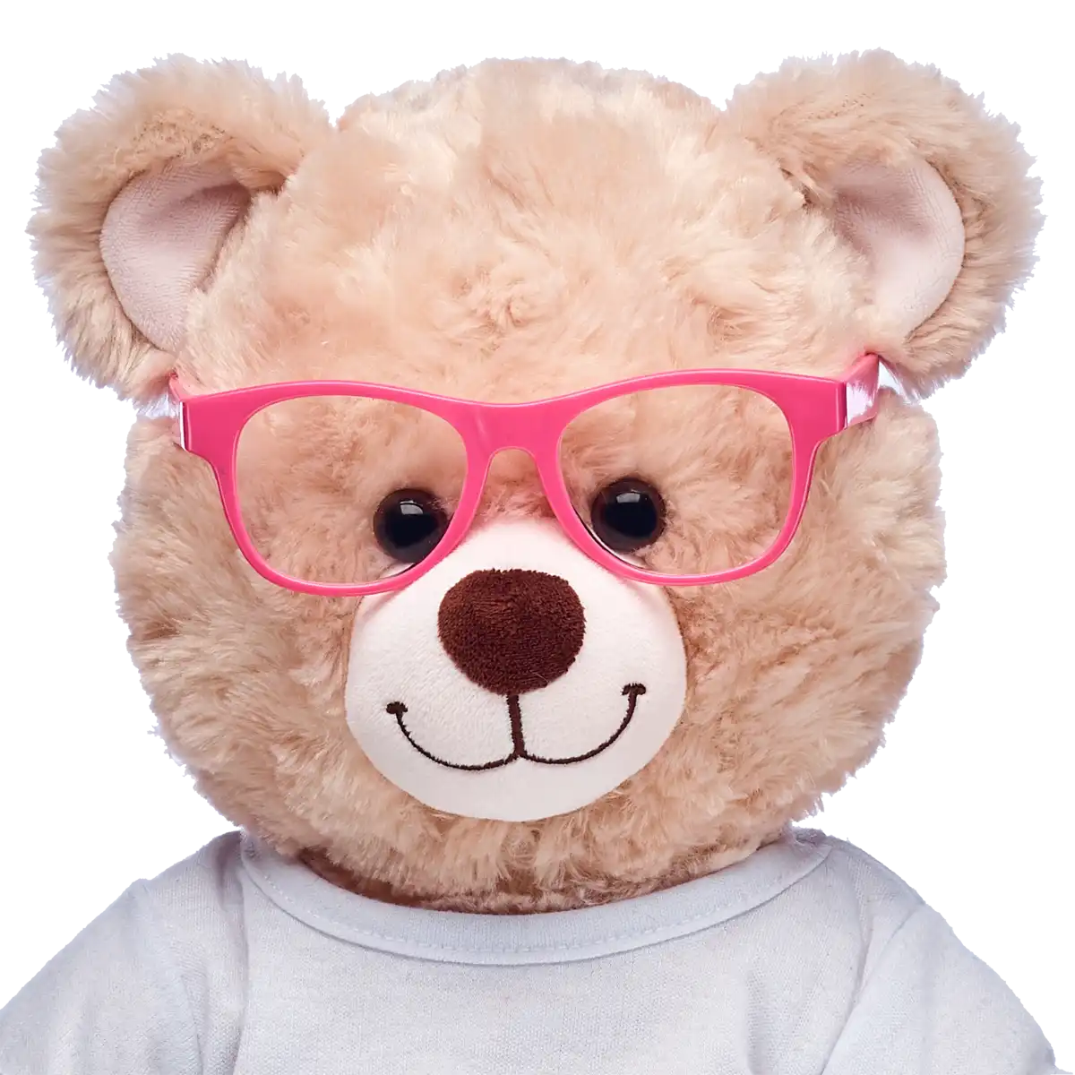 Verleihe deinem Kuschelfreund ein buntes und spaßiges Aussehen mit diesen stilvollen pinken Brillen! Die klaren Gläser und das auffällige pinke Gestell geben jedem Teddy jede Menge Persönlichkeit – perfekt für den Alltag und zum Verkleiden. Diese Brillen passen zu allen Build-A-Bear Teddys und lassen sich leicht auf- und absetzen. Ein Muss für modebewusste Teddys!