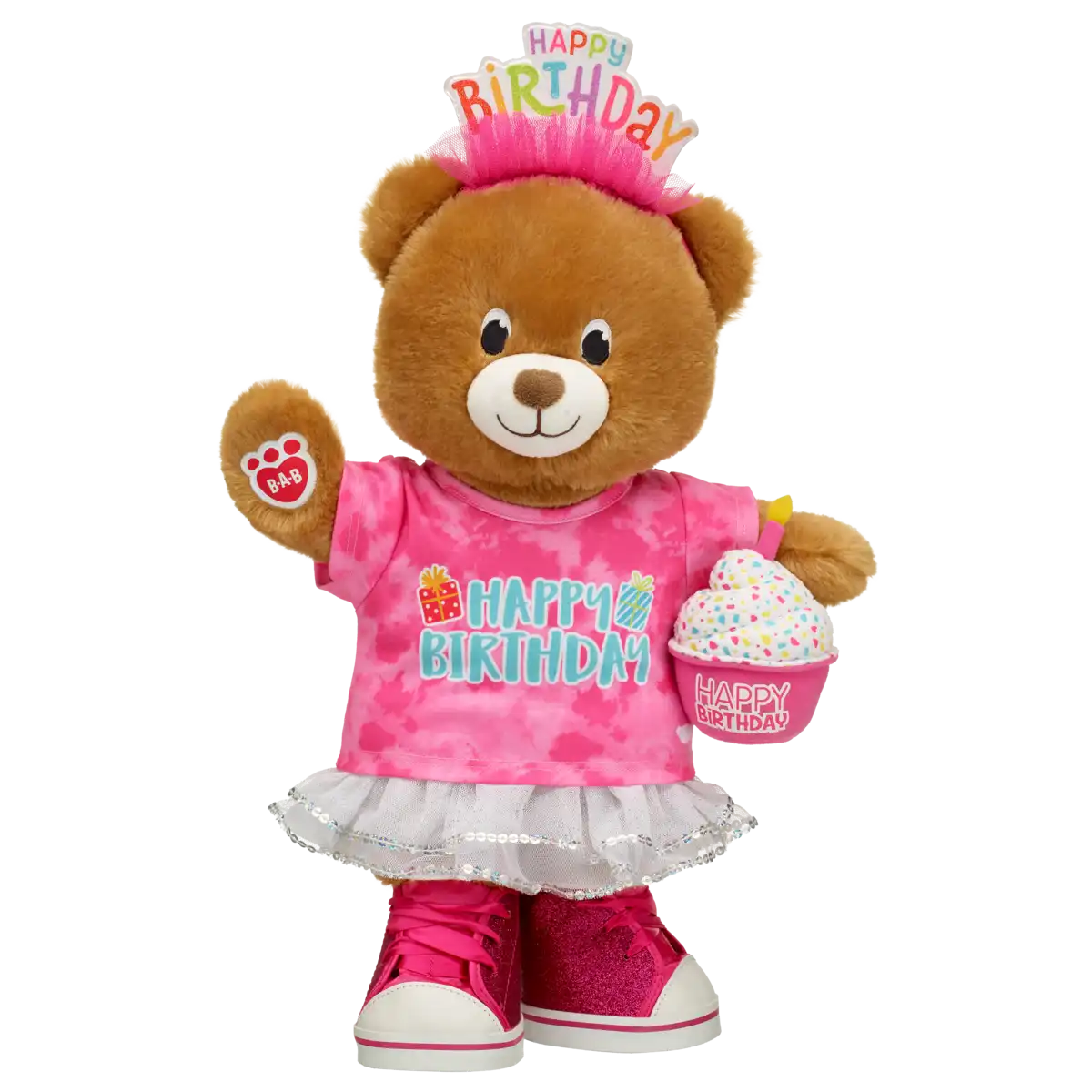 Mach den Teddybär-Geburtstag noch festlicher mit diesem rosa Geburtstag T-Shirt von Build-A-Bear! Mit seinem bunten Batikmuster und dem „Birthday Girl“ Text ist dieses T-Shirt perfekt, um große und kleine Momente zu feiern.