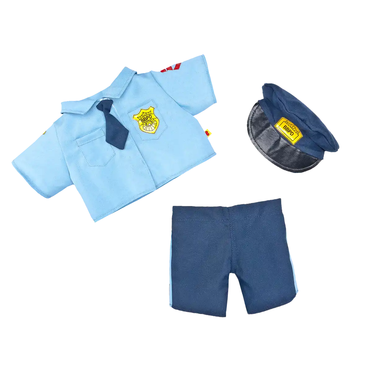 polizeiuniform mit Hemd, Hose und Hut – perfekt für Bären, die davon träumen, in der Bärenstadt zu helfen und zu beschützen