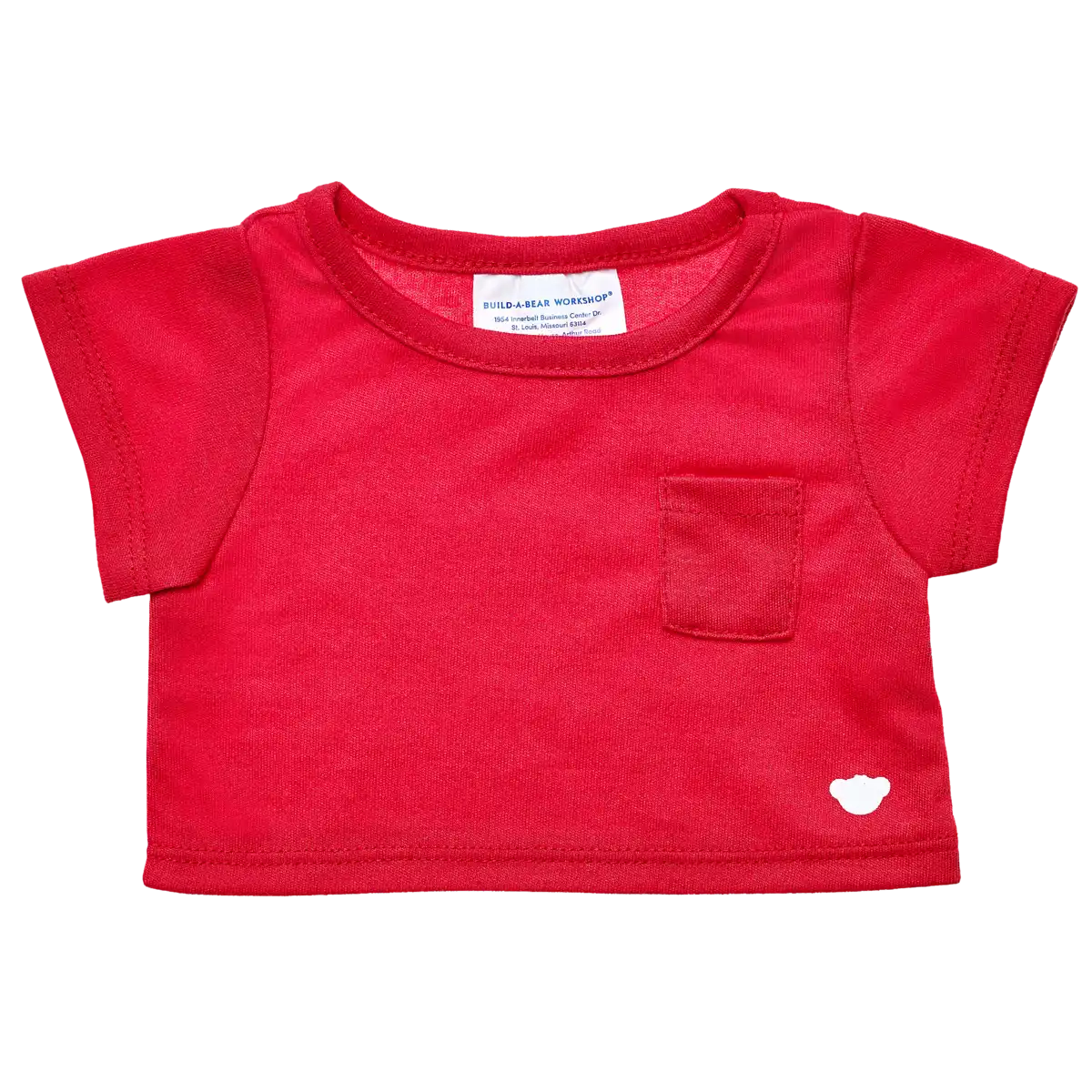 Rotes Build-A-Bear-T-Shirt mit Brusttasche aus weichem Material. Schick und bequem für Bären.