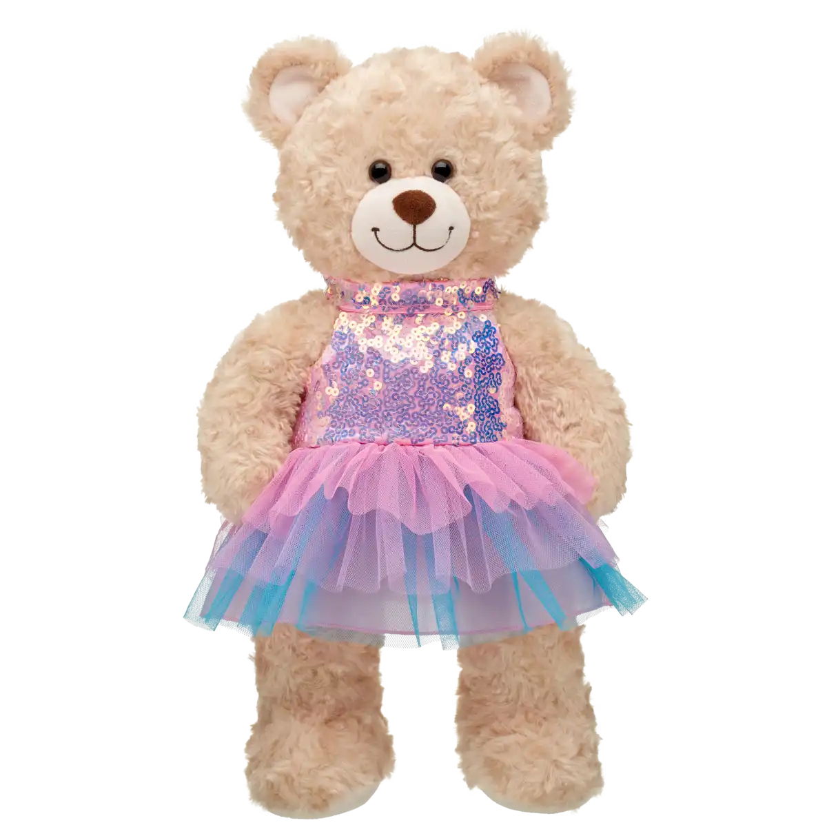 Gib deinem Teddy einen feenhaften Look mit diesem glitzernden Feenkleid mit Pailletten und Tüll. Perfekt für magische Abenteuer!