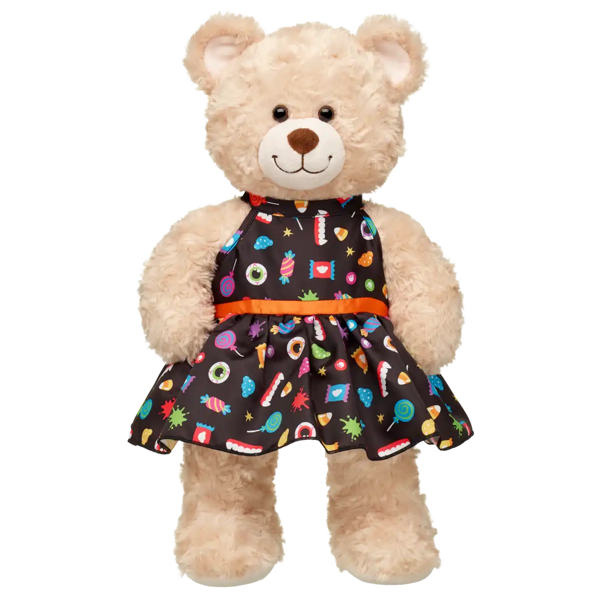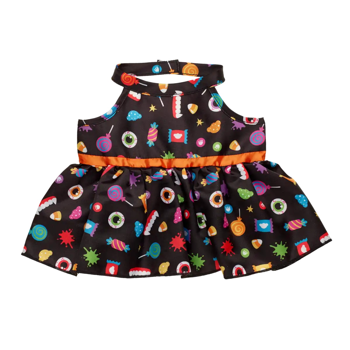 Halloween-Kleid mit Süßigkeitenprint – perfekt für Teddys, die Feste, Farben und (Un)gemütlichkeit lieben!