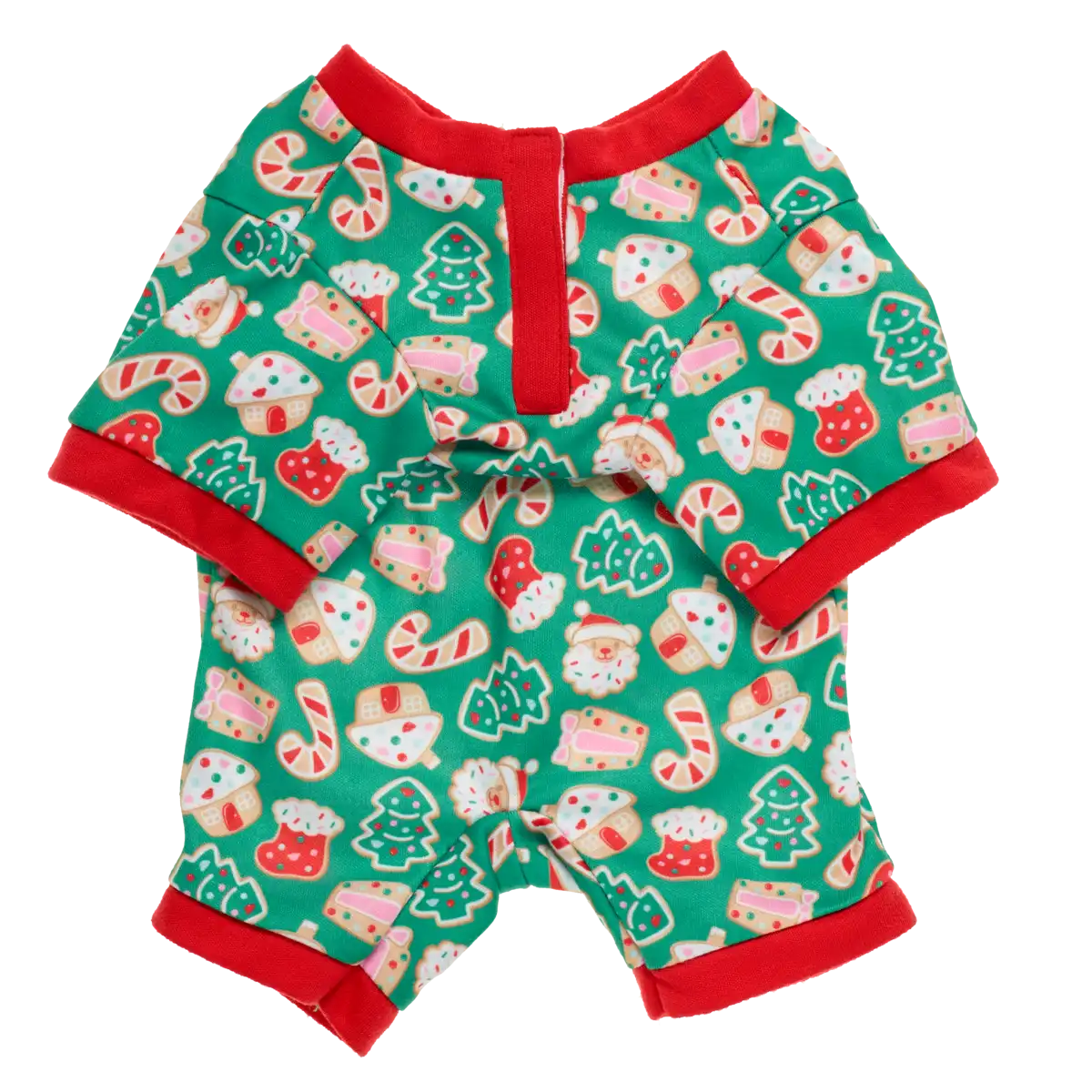 I bamse‑eventyret gemmer sig en af de sødeste nat‑stunder! Holiday Cookie Sleeper er en blød, hyggelig heldragt til bamser med et festligt julemønster af små julecookies — perfekt til godnat‑kram, hygge ved juletræet eller bare når bamsevennen vil være ekstra komfortabel og juleklar.