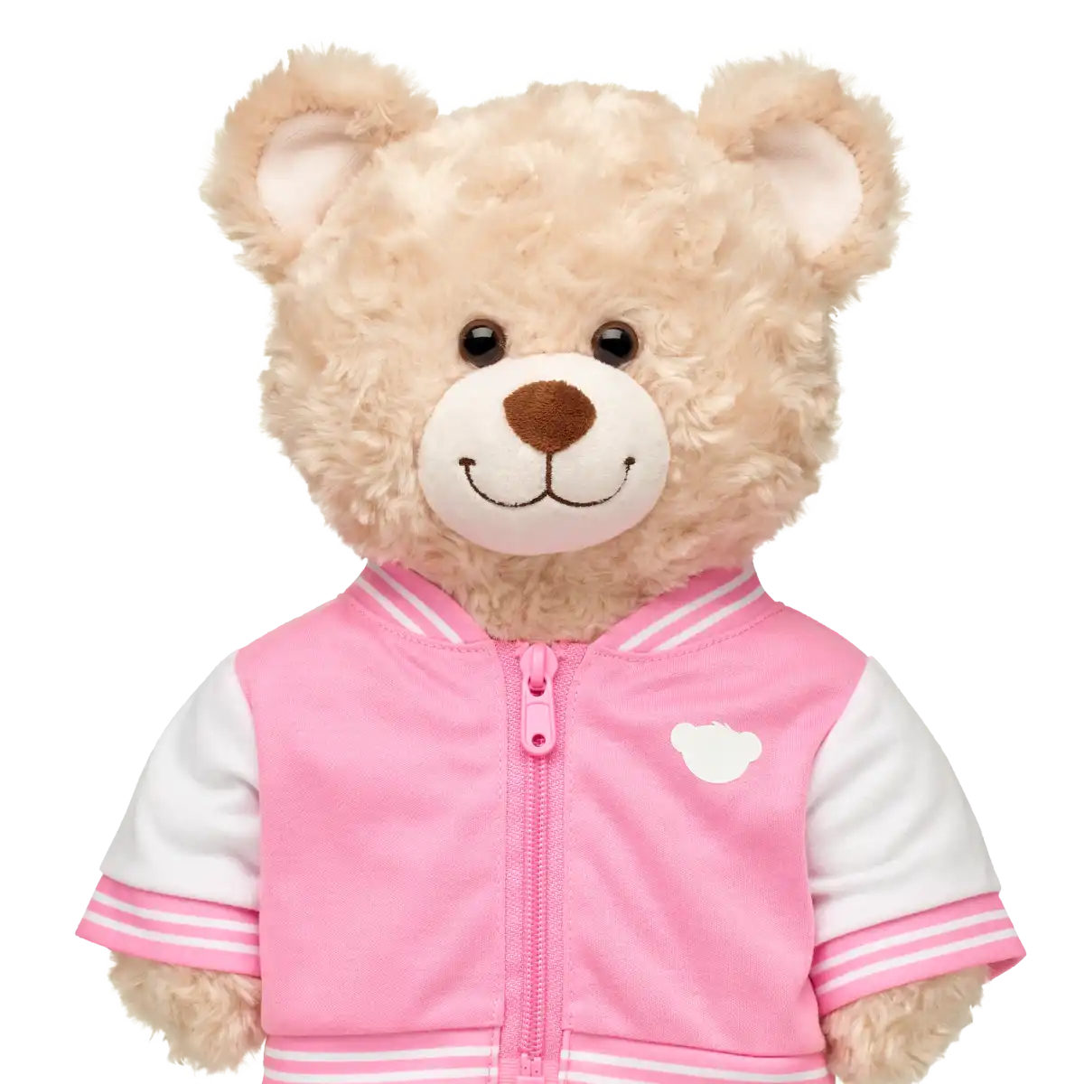 Pink und praktisch! Die perfekte Jacke für Bären, die stilvoll auf Abenteuer gehen wollen.