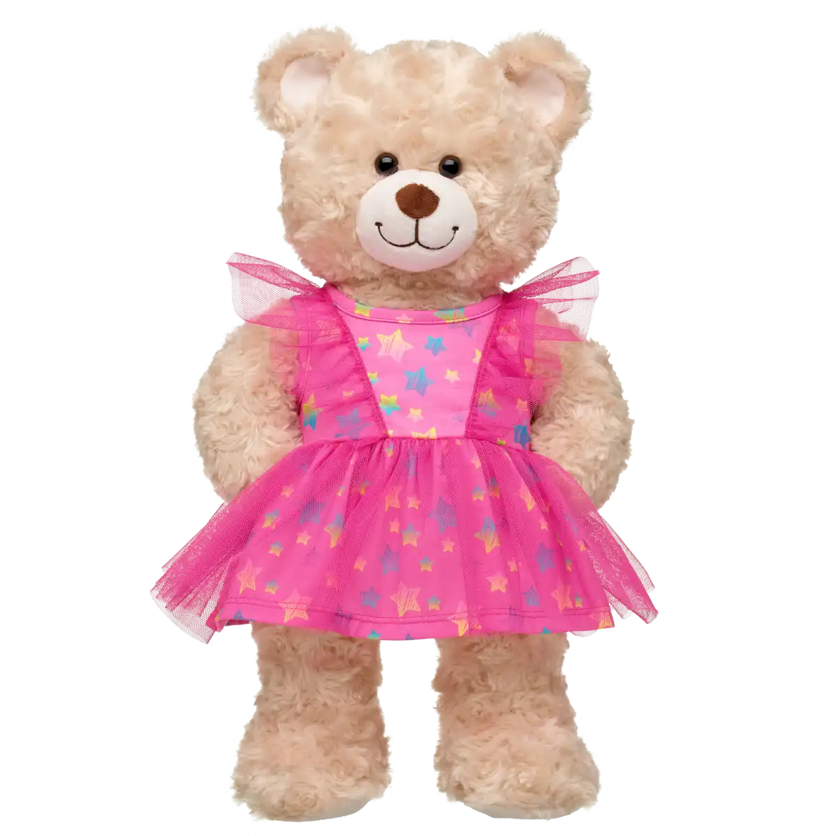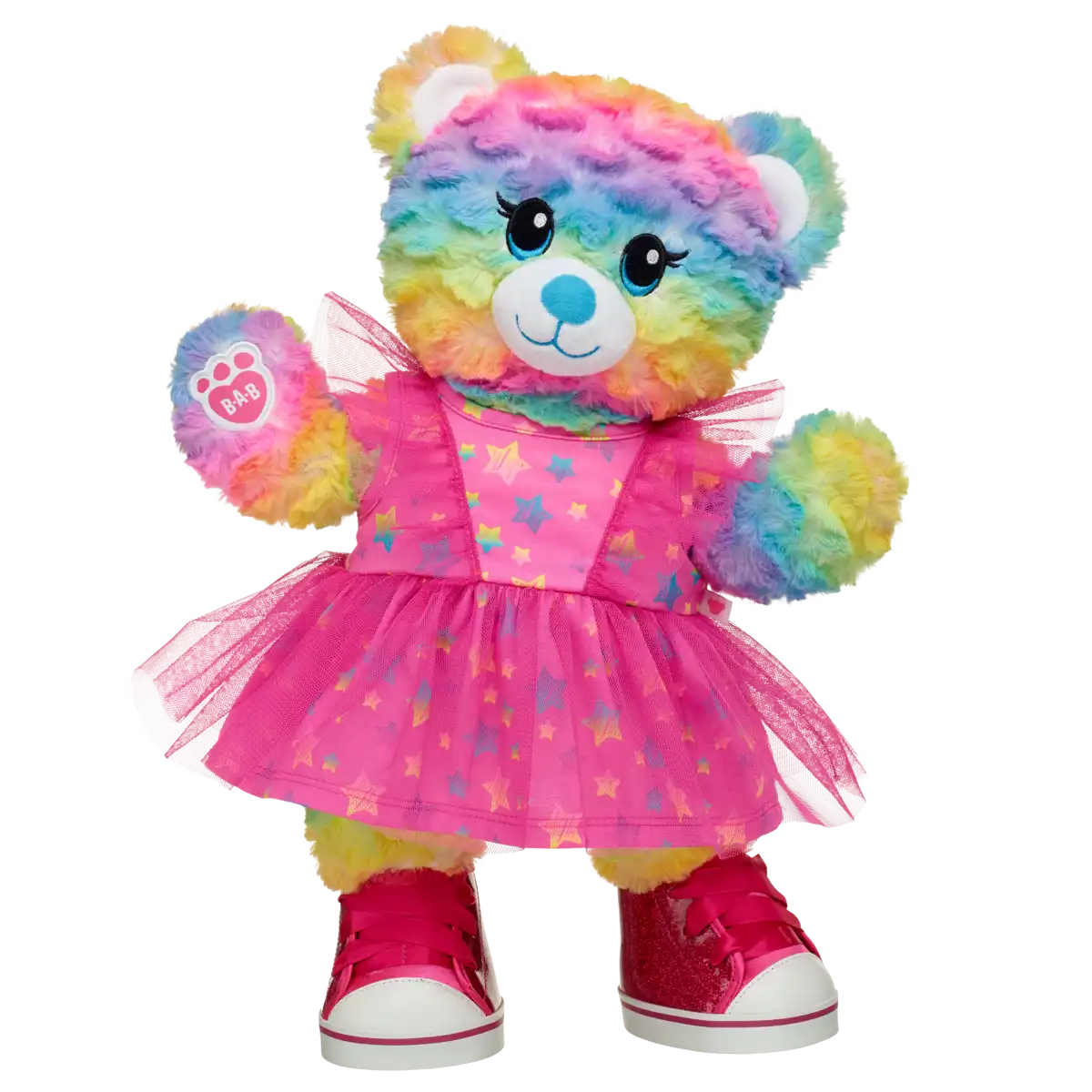 Lass deinen Bären bei jeder Umarmung wie ein Regenbogen erstrahlen! Unser Rainbow Tulle kleid ist ein kleines, magisches Meisterwerk – voller funkelndem Tüll mit Sternen in allen Regenbogenfarben. Es ist gemacht, um Bären zum Tanzen, Swingen und Strahlen bei jeder Veranstaltung zu bringen.