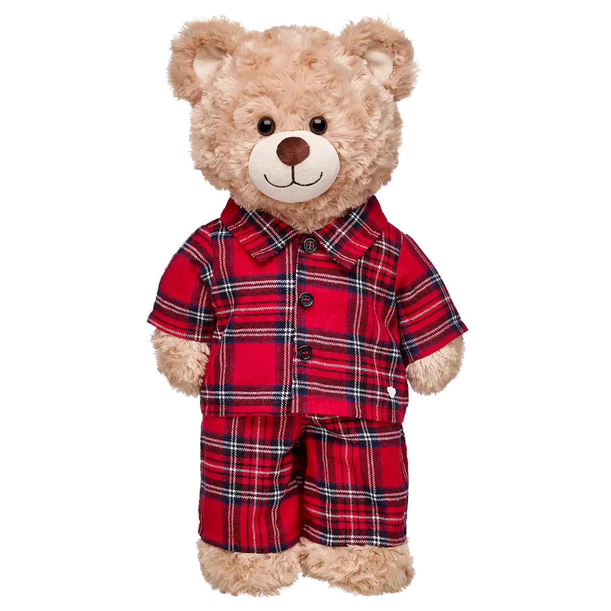 Zieh deinen Teddy in den klassischen roten Karoschlafanzug und mach die Schlafenszeit noch gemütlicher. Perfekt für Kuscheln und Land der Träume!