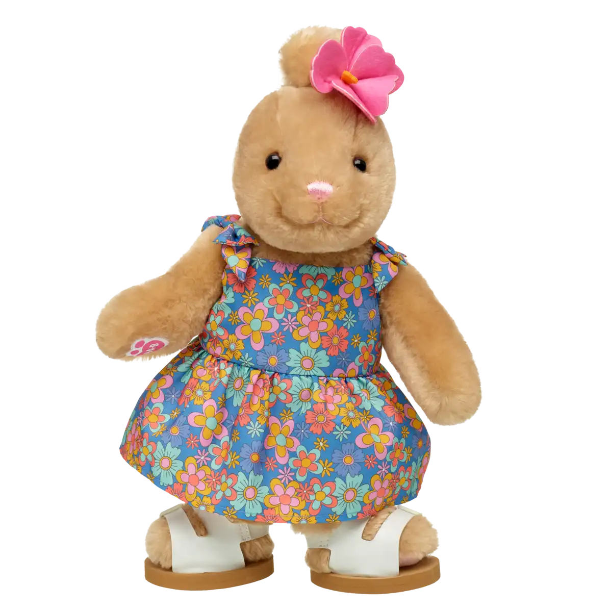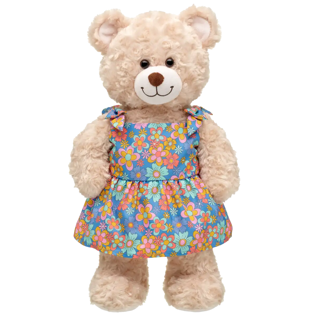 Retro Blumenkleid für Build-A-Bear Teddys. Weich und komfortabel mit gemütlichem, farbenfrohem Blumenprint.