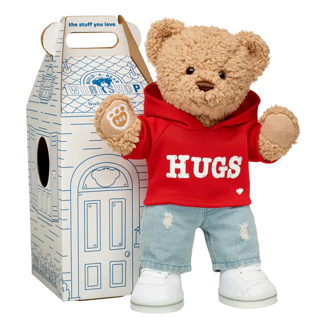 Omfavn krammetid med stil! Med denne røde hoodie bliver din bamseven ekstra varm og hyggelig. Hoodie‑ens klare farve og ”Hugs”‑tryk sender et stort bamsekram ud i verden. Din bamse bliver klar til eventyr, hygge og leg. Kombinér med tøj og tilbehør for at skabe det perfekte outfit – fordi hver bamse fortjener at føle sig elsket og klar til at kramme!