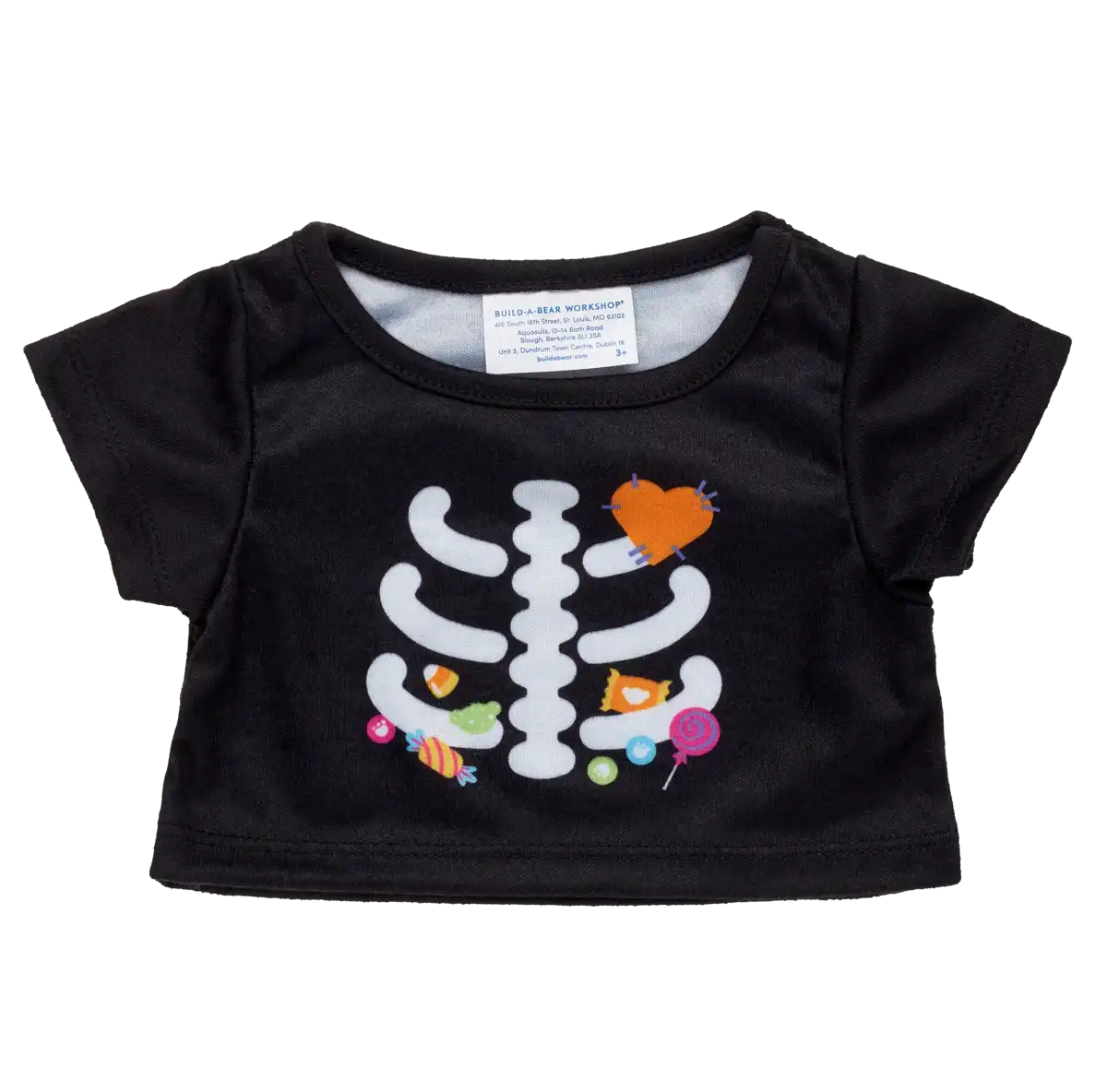 Dunkles T-Shirt mit Skelettprint – für Kuscheltiere mit Attitüde und Flair für das Edgy!