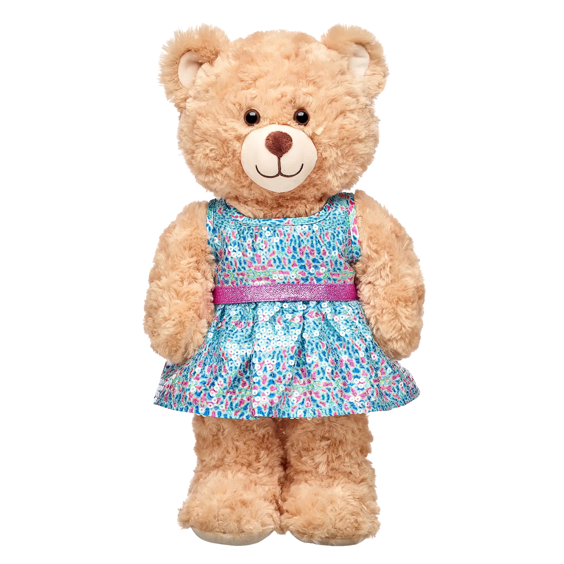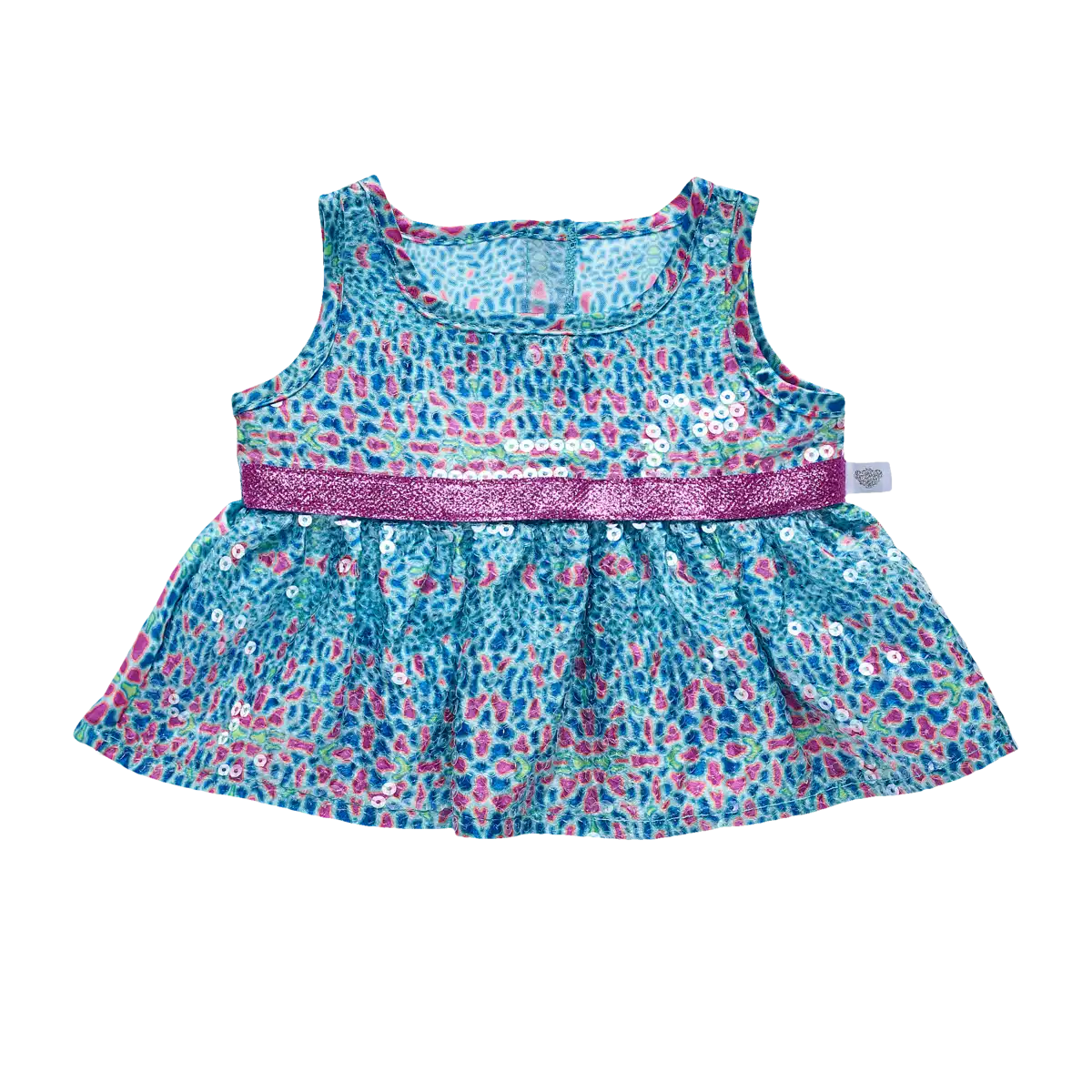 Glitzerndes Türkis- und Pink-Paillettenkleid für Build-A-Bear Bären. Perfekt für Feste und zum Spielen.